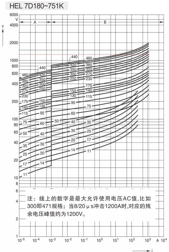 Remark: the Impluse voltage testing standards(1.2/50μs) with 40 times are only applicable to the products which with the varistor voltage more than 430V.